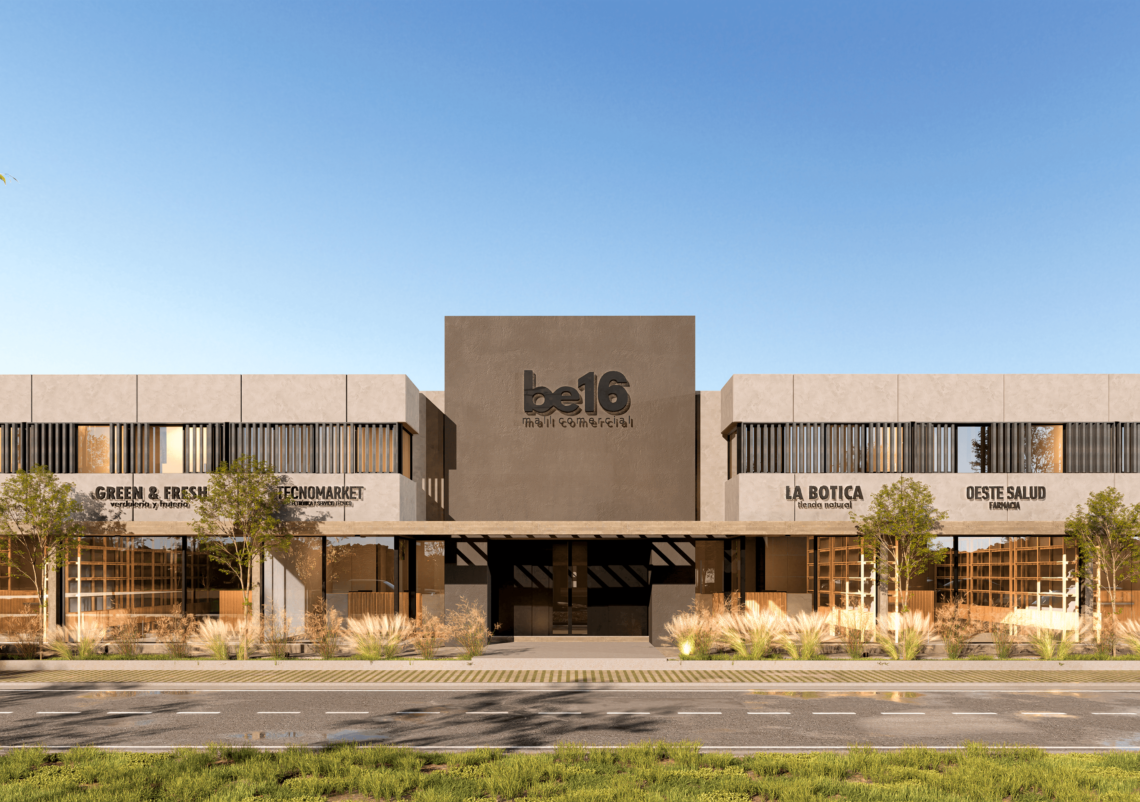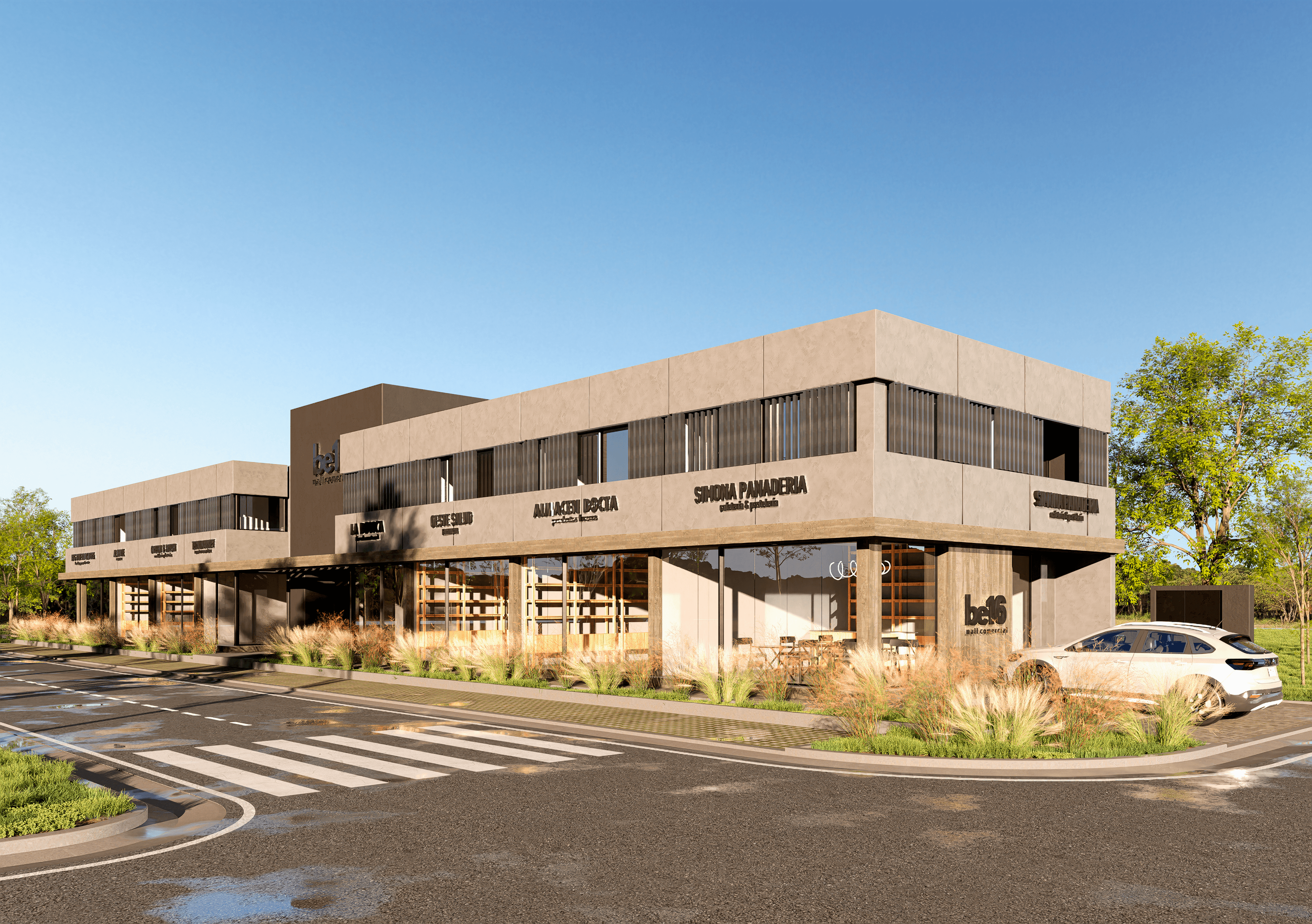 Frente a Be12, y en el acceso principal de Docta Urbanización, surge Be16: una evolución natural de un concepto que ya se consolidó como hito comercial en la zona. Este nuevo complejo retoma la idea de paseo comercial con 8 locales en planta baja —algunos de ellos aptos gastronómicos— y suma un nuevo programa en planta alta con oficinas y consultorios privados, acompañando el crecimiento sostenido del barrio y sus nuevas demandas de servicios.